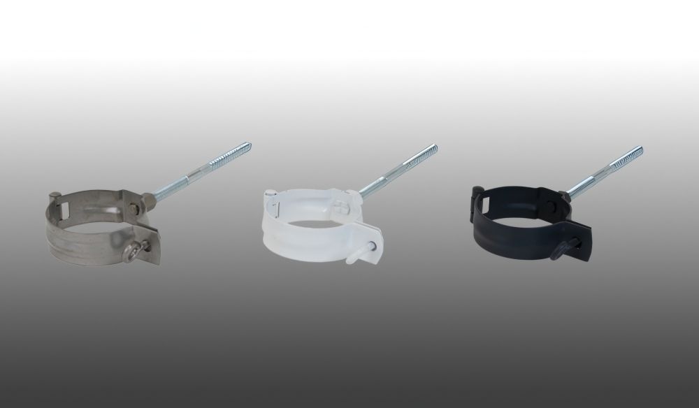 Alu-Rohrschelle zur Befestigung des Fallrohrs an der Fassade