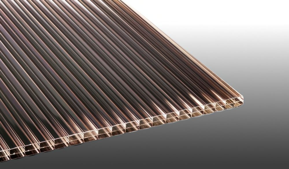 Sonnenschützende Polycarbonat Stegplatte in Bronze 16 mm Stärke mit 20 mm Stegabstand